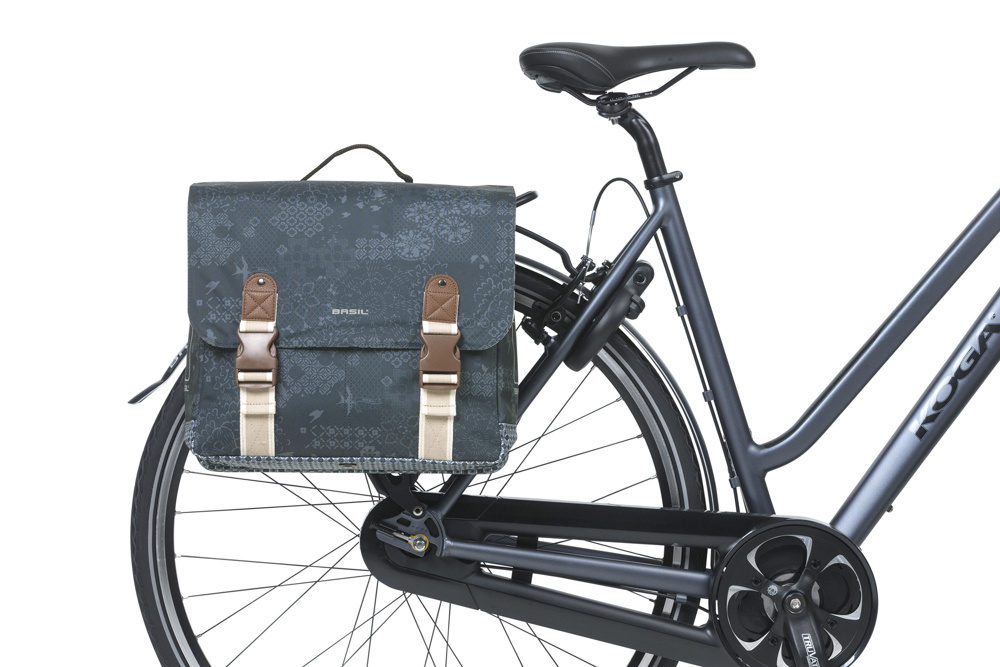 Mit der Basil Bohè;me holst du dir eine lebensfrohe doppelte Fahrradtasche für dein Rad. Die Taschen sind in einem trendigen Indigoblau, bestehen aus wasserabweisendem Polyester und haben ein Fassungsvermögen von 35 Litern. Die Doppelfahrradtaschen von Basil Bohè;me sind ein wahres Geschenk des Himmels, wenn es ums Einkaufen geht, aber sie sind auch sehr nützlich, wenn du dich auf einer Fahrradtour erholen willst. Mit so einer ungewöhnlichen Fahrradtasche fällst Du überall auf! Sogar wenn es dunkel ist, bist du wegen der Reflexionszonen auf allen Seiten für andere Verkehrsteilnehmer besser sichtbar. Die Taschen haben ein robustes Innenfutter und dmeine Sachen bleiben wegen der Schnürkordel dort alle gut beieinander.