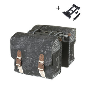 Mit der Basil Bohème holst du dir eine trendige doppelte Fahrradtasche ins Haus. Diese einzigartigen Fahrradtaschen von Basil bestehen aus wasserabweisendem Polyester und sind in einer Holzkohlefarbe, nämlich in Anthrazit, erhältlich. Die Taschen fallen durch ihre Elemente aus Kunstleder auf, die dem Ganzen einen künstlerischen Look verleihen. Bei einem Fassungsvermögen von 35 Litern bringst du deine Einkäufe oder andere Gegenstände darin unter. Du kannst sie in deiner Fahrradtasche mit einer Kordel festbinden, damit deine Lebensmittel sicher an ihrem Platz bleiben.