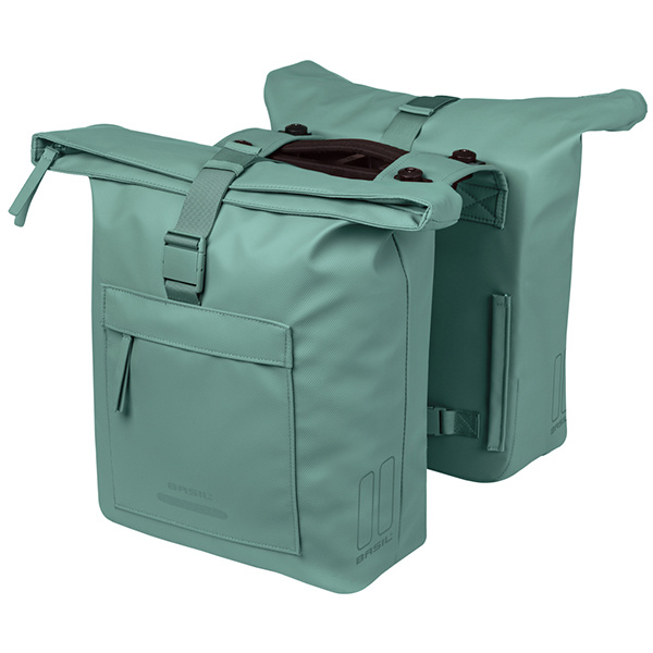 Kurze beschreibung: Die Basil Brooklyn Fahrrad Doppeltasche in Silbergrün ist eine geräumige und moderne Doppeltasche mit 41 Litern Fassungsvermögen, perfekt für den Pendlerverkehr. Mit dem MIK-System können Sie die Tasche ganz einfach an Ihrem (Elektro-)Fahrrad befestigen!