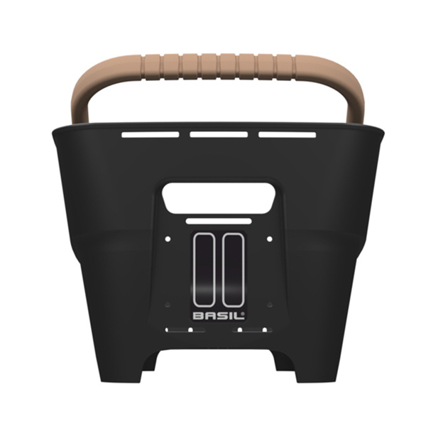 Der Korb hat eine abgerundete, rechteckige Form und bietet echte Benutzerfreundlichkeit. Die abgeschrägte Kante an der Sattelseite sorgt für mehr Trittspielraum beim Radfahren. Eine integrierte Anti-Rutsch-Matte hält Ihre Sachen auch auf holprigen Straßen sicher an ihrem Platz. Der Griff ist gepolstert, sodass Sie den Korb leise und bequem tragen können, ohne dass etwas klappert. Mit 21 Litern Fassungsvermögen ist genug Platz für einen Rucksack oder eine Laptoptasche. Die Öffnungen im Boden sorgen dafür, dass Regenwasser einfach abläuft.