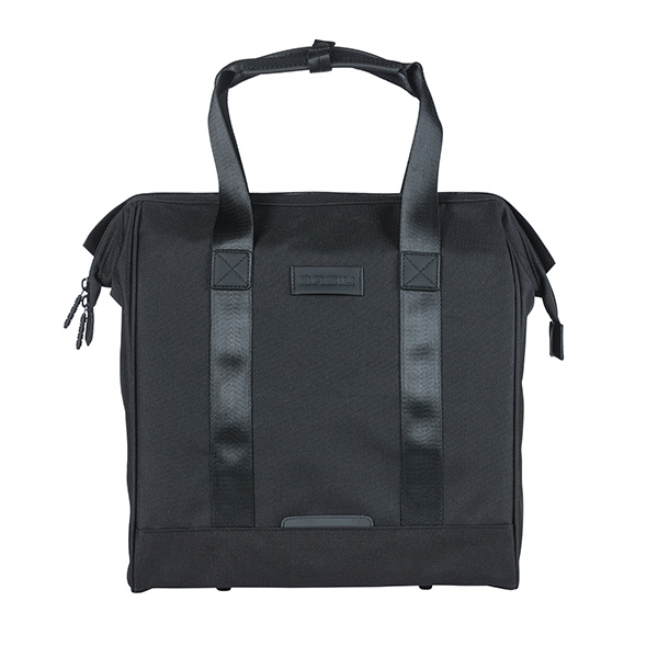 Mit dem Basil Grand Fahrradshopper wird das Erledigen von Einkäufen zu einem Fest. Der Shopper sieht wegen seiner schwarzen Farbe schön modisch und luxuriös aus. Er ist außerdem aus wasserabweisendem 600D Polyester hergestellt und hat ein großes Hauptfach mit gepolstertem (Laptop-)Fach. Das ist für dein Studium oder für deine Büroarbeit sehr praktisch. Mit einem Fassungsvolumen von 23 Litern bietet er dir auch den Platz für nötige Einkäufe oder andere Dinge. Die Tasche ist formfest. Dank ihrer Größe kannst du dort auch Getränkepackungen ohne Probleme stehend verstauen. Der Basil Grand Fahrradshopper hat einen sogenannten Arzttaschenverschluss mit einer besonders großen Öffnung, damit du Platz für das Packen des Shoppers hast. Mit MIK-Hooks lässt sich die Fahrradtasche mit einer Handbewegung sicher am Gepäckträger befestigen – und genauso einfach wieder abnehmen. Tipp: Du willst damit Rad fahren? Befestige die Griffe dann mit der Schlaufe am Logo. Dadurch verhinderst du, dass die Handgriffe umherflattern.