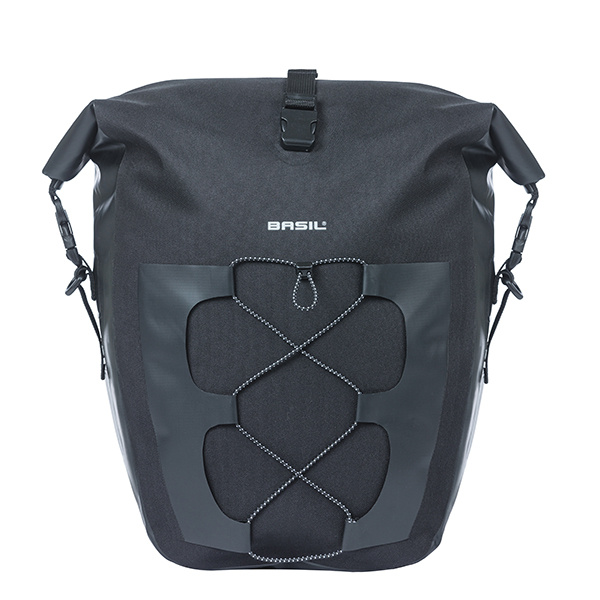 Mit der Basil Navigator Waterproof kannst du deine sportlichen Ansprüche höher setzen. Die Tasche ist 100 % wasserdicht (IPX 3) und hat ein Volumen von 25 bis 31 Litern. Das macht die Einzelfahrradtasche optimal für unterwegs. Die Tasche ist aus einer Kombination von Tarpaulin und 600D Polyester hergestellt und hat einen abnehmbaren und verstellbaren Schultergurt. Du möchtest deinen Helm oder deine nasse Regenjacke ablegen? An der Vorderseite der Tasche befindet sich ein reflektierendes Gummiband.