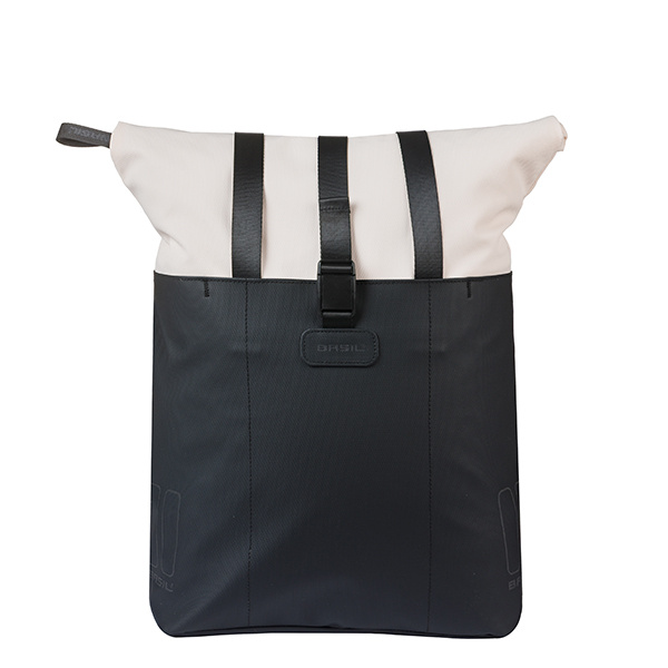 Kurze beschreibung: Der Basil Vive Fahrradshopper in Off-White/Schwarz ist eine stilvolle und praktische Fahrradtasche mit 15–20 Litern Fassungsvermögen und MIK-Hooks. Perfekt für alle, die auf jeder Radfahrt Stil und Komfort kombinieren möchten.