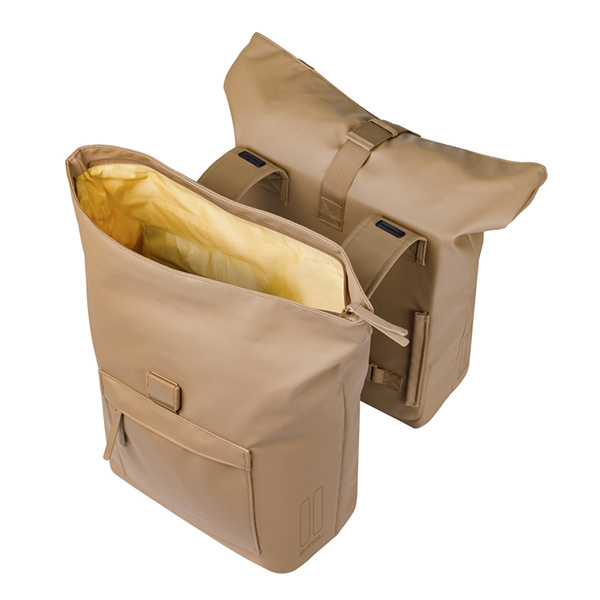 The Basil Brooklyn double pannier bag is made for commuters and urban cyclists who are on the go every day and need to carry a lot, without compromising on style. From a laptop and documents to groceries or sportswear, this double pannier offers space and organisation. The sand-coloured version looks professional and effortlessly complements any bike.