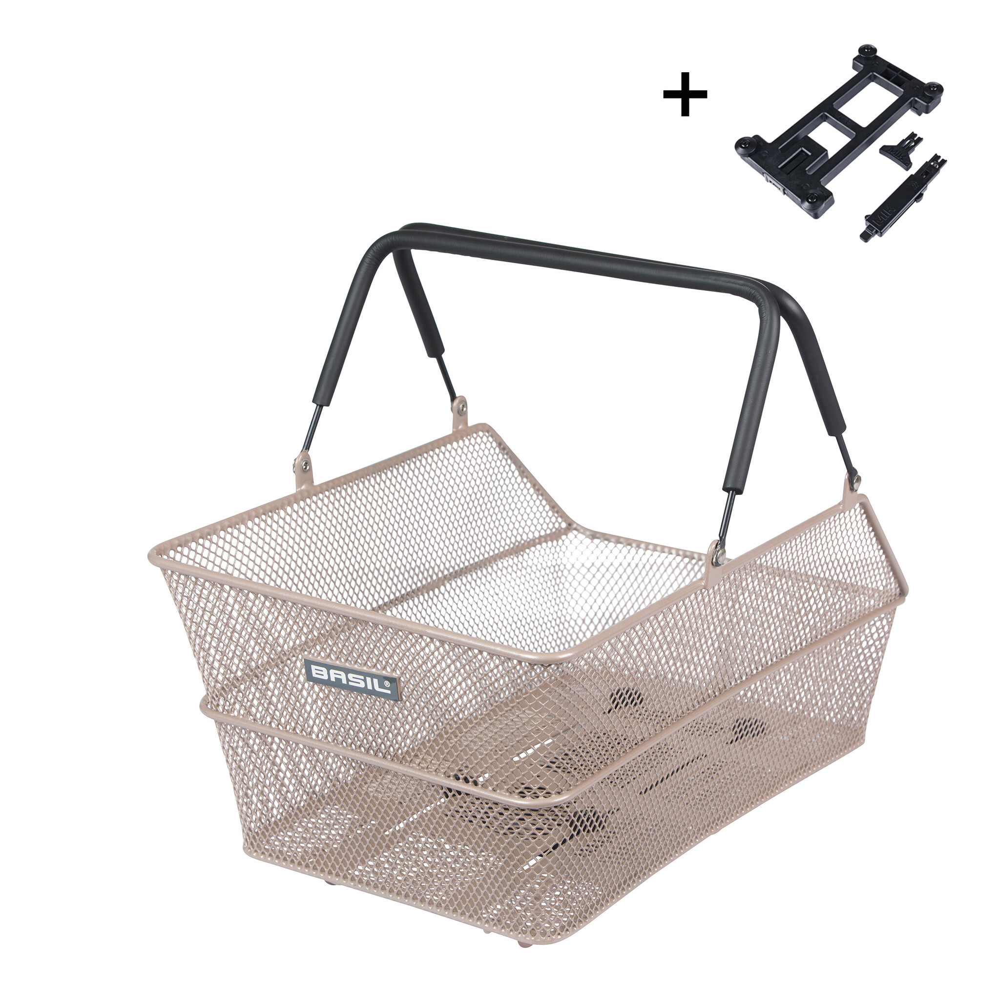 The Basil Cento MIK rear basket is a real eye-catcher for any bicycle! With its generous volume and sturdy construction, this basket offers enough space for your bag, sports gear, or daily shopping. The basket is not only user-friendly because of its capacity and the MIK system, but it also looks great. The fine mesh steel in a soft nude metallic color gives the basket a unique appeal.