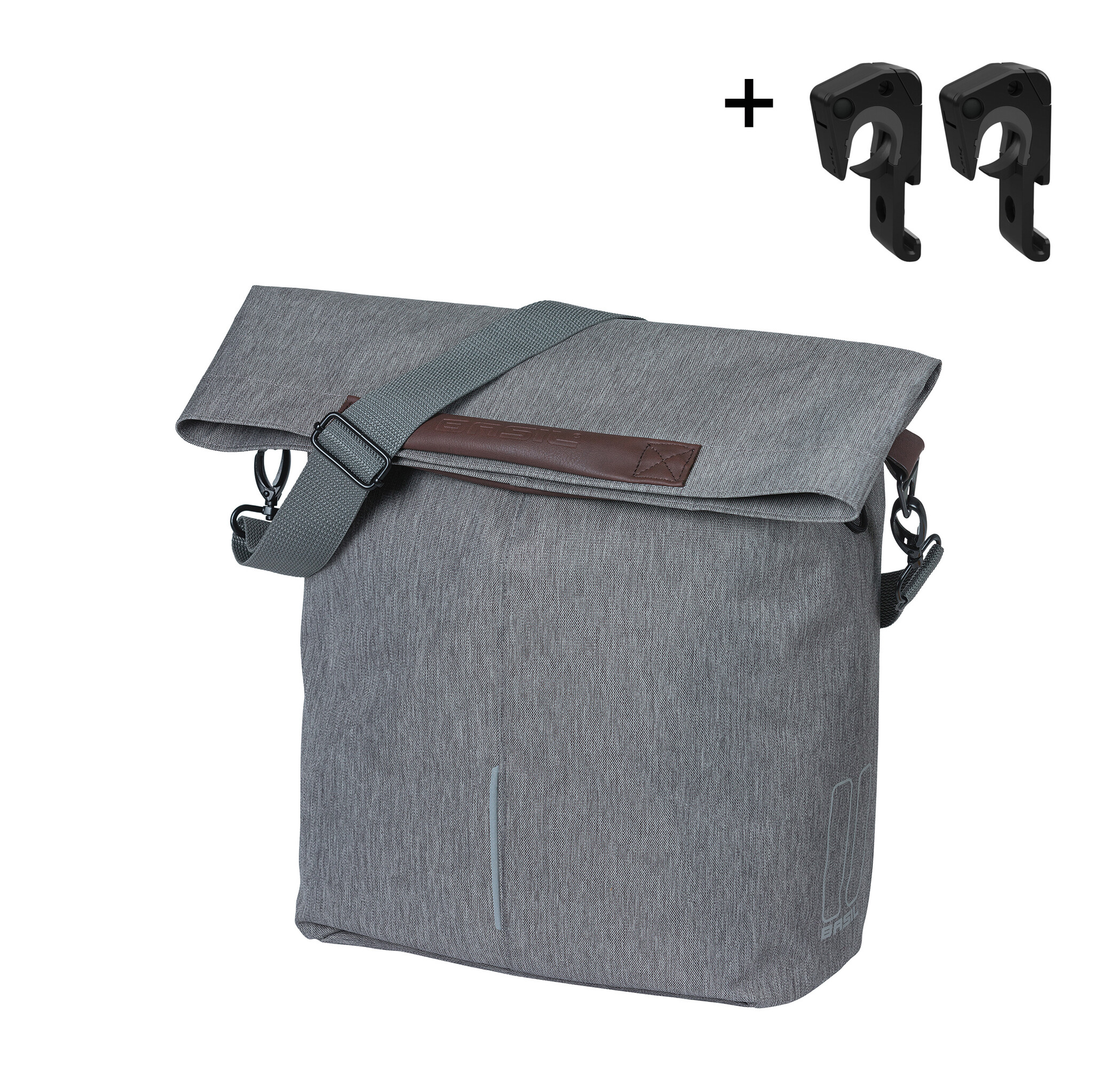 Short description: The Basil City Shopper in grey melee is a fashionable bicycle shopper when you need it most! With a capacity of 14 to 16 litres, you can easily carry your purchases with you or quickly hang them on your luggage carrier with the MIK Hooks system.