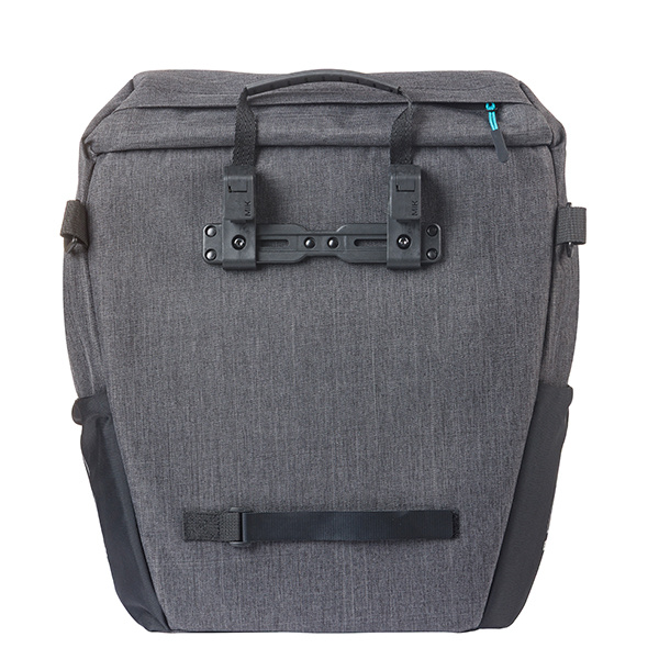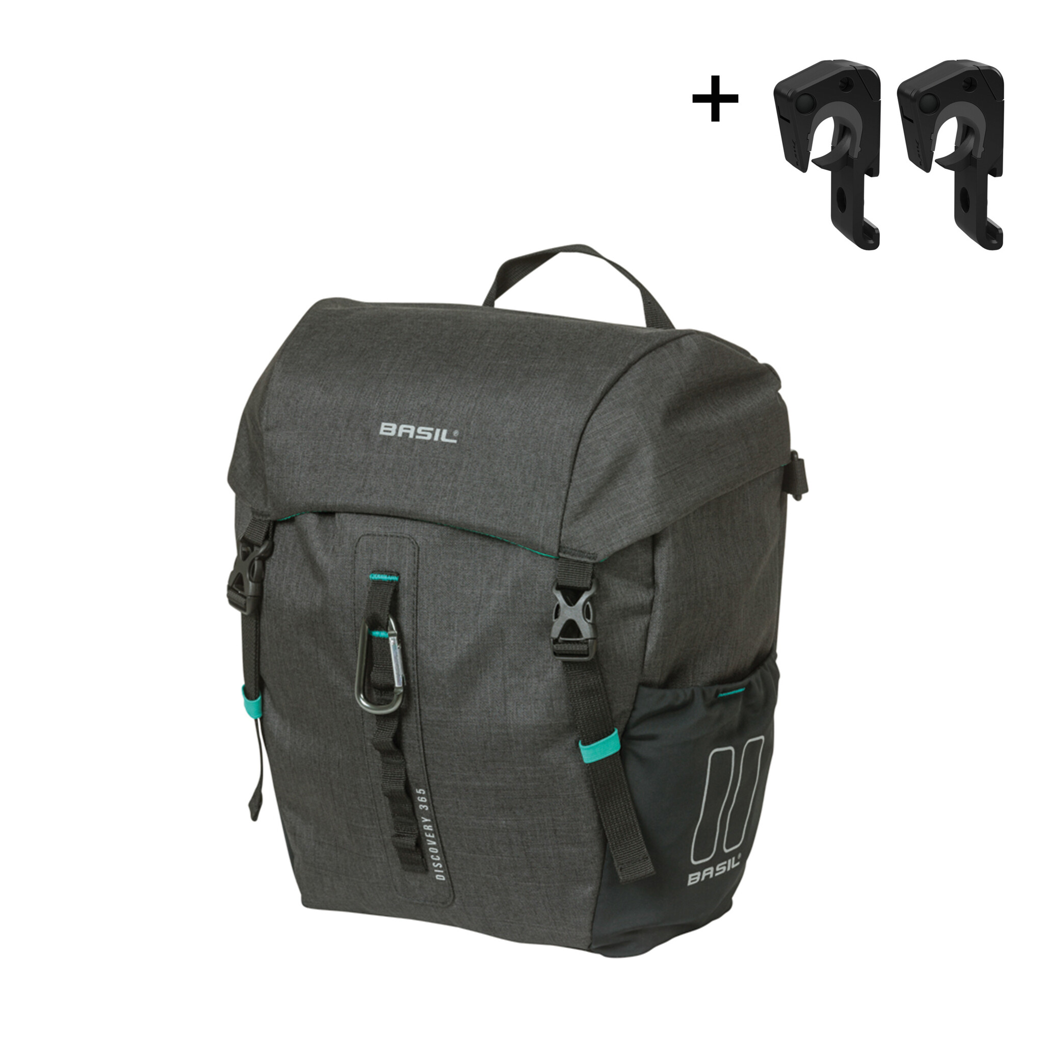 If you are looking for a sporty and lightweight single pannier bag, the Basil Discovery 365D single bicycle bag in size M is perfect for you! The black bag is made of polyester and is waterproof, thanks to the included rain cover. The single bicycle bag for the back of the bike has a capacity of 9 litres and can easily be hooked onto the carrier with the MIK Hooks System.The bag also has a carabiner for accessories and a detachable shoulder strap. Thanks to the handle, you can easily take the bag into the shop. It has a zip pocket on the lid and on the front, a practical drawstring to keep your belongings in place and handy elastic side pockets. The reflection on all sides makes you more visible in the dark.