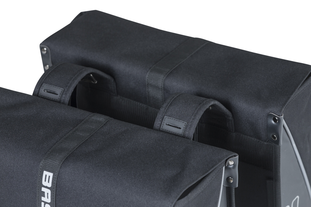 Short description: You`ll always have enough space for all your essentials with the spacious Basil Forte Double Bag and its generous capacity of 35 litres. These sturdy bags are available in stylish black.