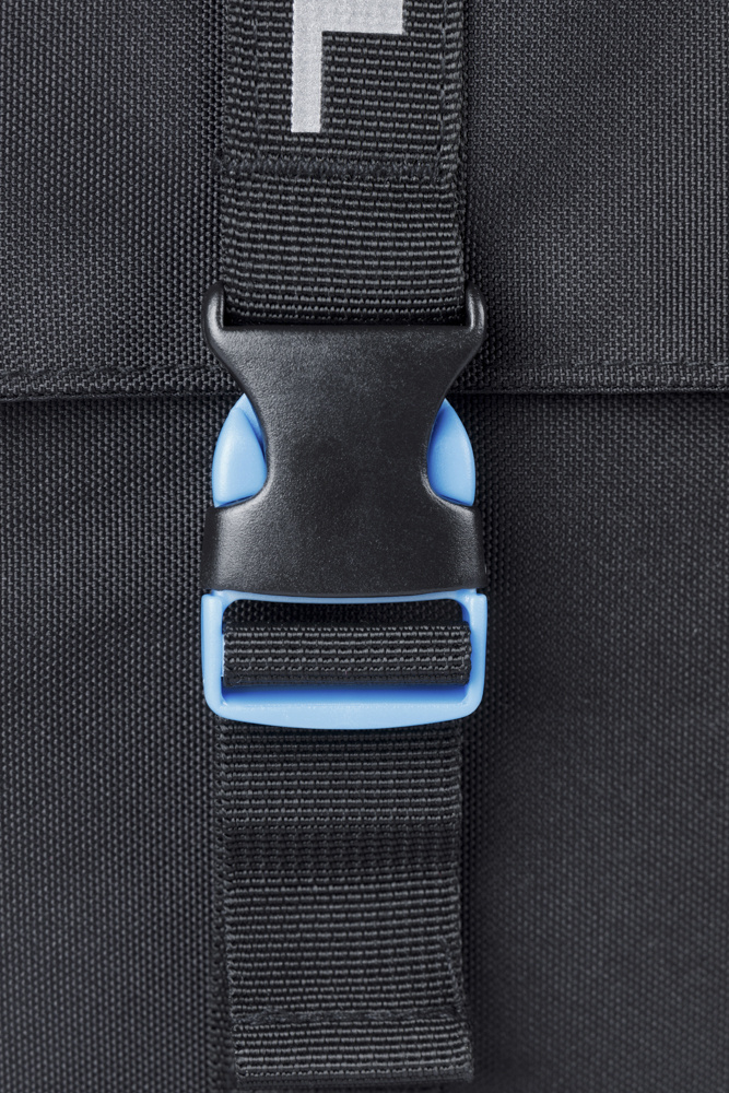 The Basil Forte Double bag is a practical double pannier in which you can carry a lot of groceries – handy for when you want to get ingredients for the evening meal quickly after work. The bag is a strong multi-tasker in a contemporary style and is made of water-repellent polyester in combination with oilcloth. The bag also has an extra sturdy construction. The Forte Double Bag is equipped with a strap and adjustable closure. Thanks to the reflective accents on all sides and an extra-long reflective piping, you are more visible in the dark.