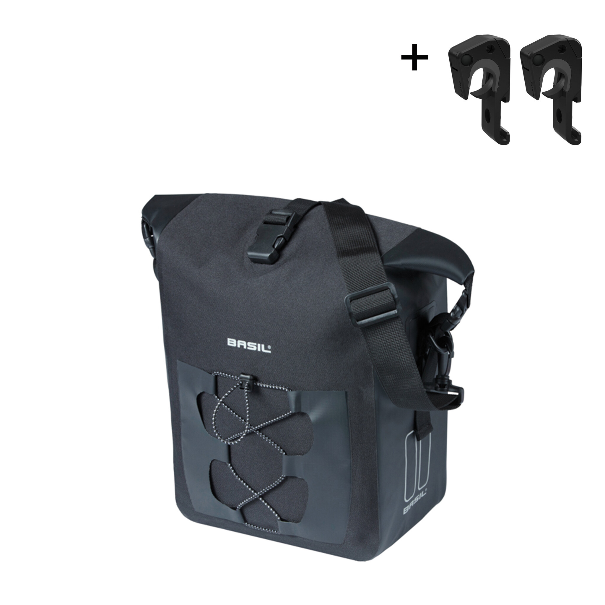 Up your sporting game with the Basil Navigator Waterproof. 100% waterproof (IPX 3) and with a capacity of 12 to 15 litres, this single bicycle bag is ideal for taking on the road. The bag is made of a combination of tarpaulin and 600D polyester and has a detachable and adjustable shoulder strap. Storing your helmet or wet mackintosh? There is a reflective elastic band on the front of the bag.