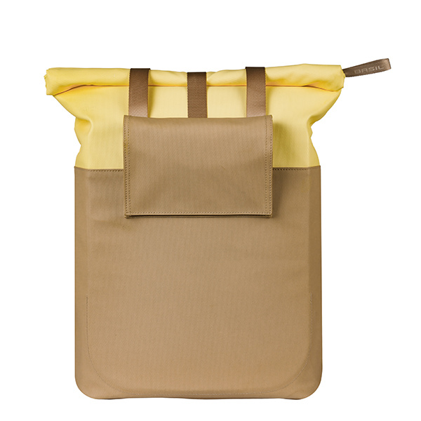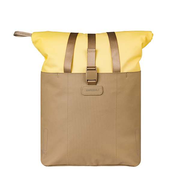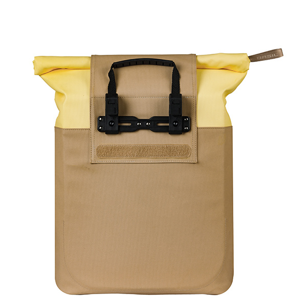 Short description: The Basil Vive bicycle shopper in sand/yellow is a stylish and practical pannier bag with a capacity of 15–20 litres, featuring MIK Hooks. Perfect for those wishing to combine style and convenience on every ride.