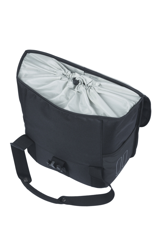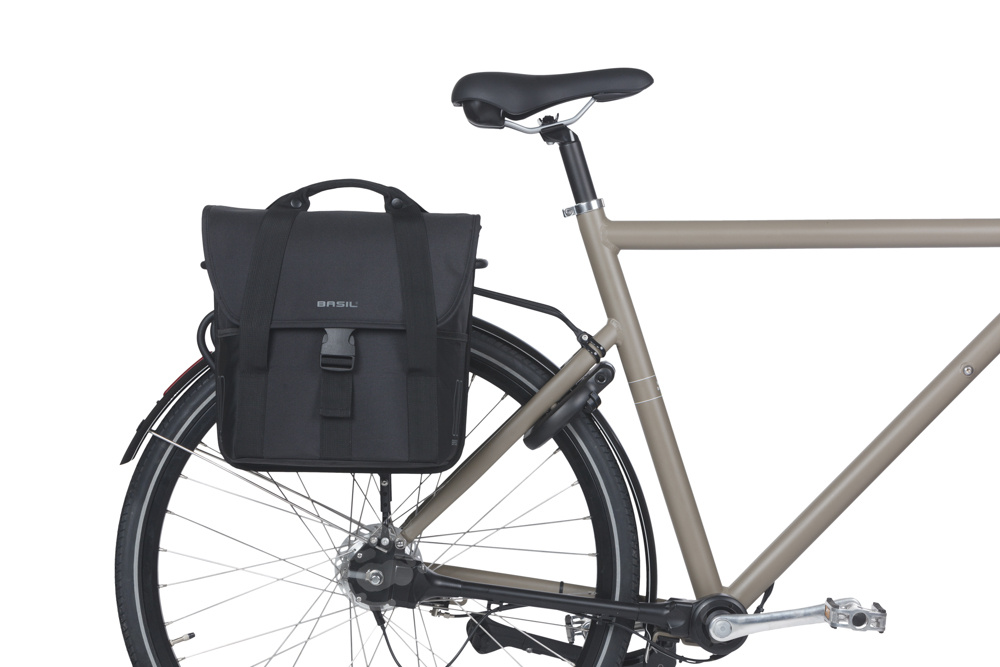 De Basil Go Solid is een enkele fietstas die goed van pas komt als je met de fiets naar werk of school gaat. Deze enkele fietstas voor achterop de fiets is gemaakt van hoogwaardig materiaal en koop je in het zwart. Verplaats je je regelmatig met de fiets en heb je daarbij altijd een heleboel spullen mee? Dan is deze oersterke Basil Go Solid tas zeker iets voor jou. De tas heeft een inhoud van maar liefst 18 liter. Daarmee is de tas uitstekend geschikt voor het vervoeren van schoolboeken, een laptop, een regenvestje, enzovoort. De fietstas beschikt over een hoofdcompartiment met aansnoerkoord. Daarmee sluit je je bagage veilig en gemakkelijk af. Verder heeft de tas dubbele elastische zijvakken en praktische handgrepen. De veiligheid op de weg wordt bevorderd door de dubbele reflecterende strepen. Je bevestigt de tas met behulp van een Hook-On systeem aan de bagagedrager van je fiets. Gebruik je de tas als schoudertas? Dan kun je dit systeem eenvoudig opbergen in het ritsvak van de tas. Ben je ook benieuwd naar de andere fietstassen van het merk Basil? Bekijk dan ons volledige aanbod. Ongetwijfeld zit er iets van jouw keuze bij.