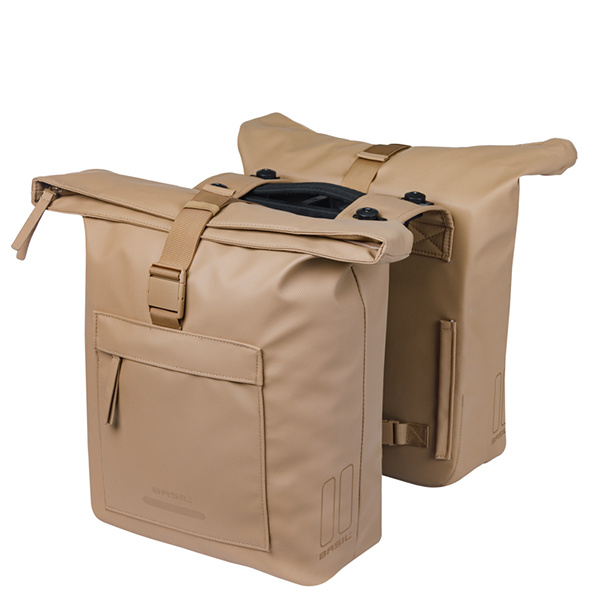 De Basil Brooklyn dubbele fietstas is gemaakt voor forenzen en stadsfietsers die dagelijks onderweg zijn en daarbij veel willen meenemen, zonder in te leveren op stijl. Van een laptop en documenten tot boodschappen of sportkleding, deze dubbele tas biedt ruimte en overzicht. De zandkleurige uitvoering oogt professioneel en past moeiteloos bij elke fiets.