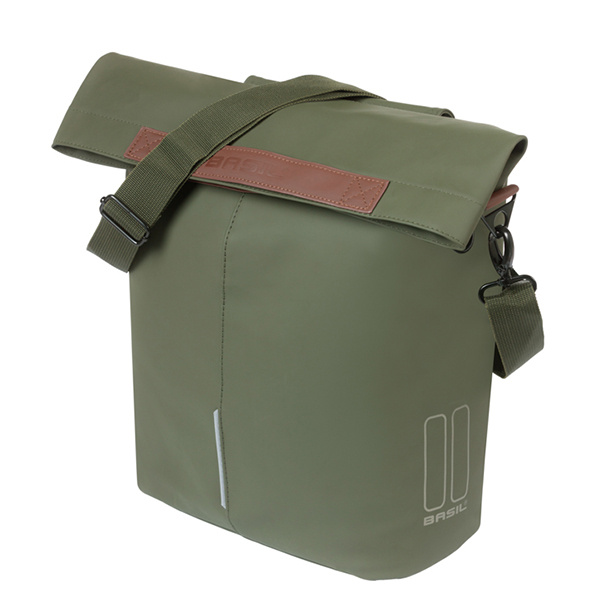 De Basil City fietsshopper is de tas voor de stad. Waar je ook naartoe gaat; werk, vrienden, de markt of een lekker drankje op het terras, deze fietsshopper is de tas om mee te nemen. Deze stijlvolle vegan lichtgewicht tas is het perfecte formaat, met een inhoud van 14 tot 16 liter. Niet te groot, maar wel groot genoeg voor al jouw essentials of boodschappen. De tas heeft een vouwsluiting met magneet, zo is de tas altijd goed te sluiten is blijven jouw spullen veilig. Met de afneembare schouderband draag je deze tas overal makkelijk mee naartoe. De reflecterende details op alle zijden van de tas maken je beter zichtbaar voor andere verkeersdeelnemers. Daarnaast kan je extra LED-verlichting aan je tas hangen. Zo kom je altijd veilig thuis. Met MIK Hooks klik je de tas met één handbeweging stevig vast op je bagagedrager – en net zo makkelijk weer los. De tas is zo ontworpen dat de haken netjes verborgen zijn, zo ziet niemand dat jouw schoudertas ook een fietstas is. Deze shopper is jouw nieuwe vriend voor onderweg.
