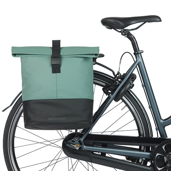 De Basil Cove dubbele fietstas is ontworpen voor wie elke dag onderweg is en zoekt naar een betrouwbare stijlvolle fietstas. Van boodschappen doen en woon-werkverkeer tot een dagje uit met het gezin. Deze dubbele tas beweegt moeiteloos met je dag mee. De ingetogen kleurencombinatie silvergreen/black geeft je fiets een frisse rustige uitstraling die perfect past bij een actieve levensstijl.