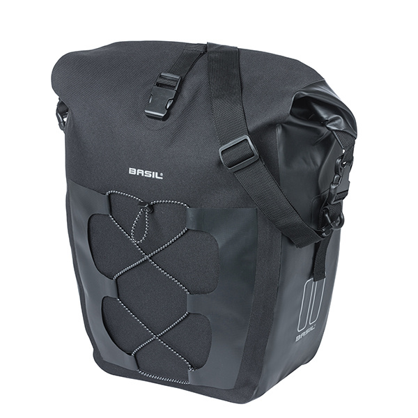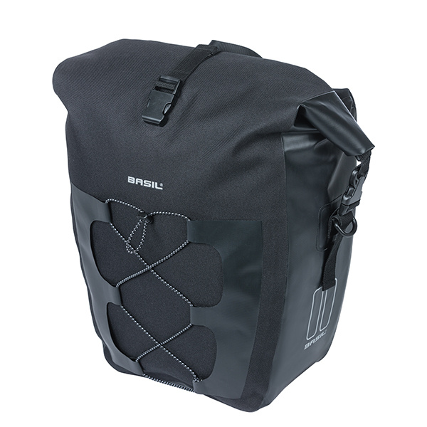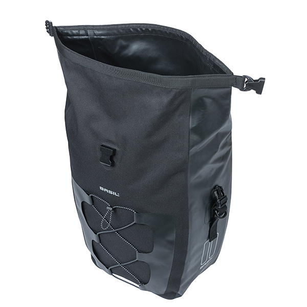 Leg je sportieve lat hoger met de Basil Navigator Waterproof L. 100% waterdicht (IPX 3) en een inhoud van 25 tot 31 liter maken de enkele fietstas ideaal om mee op pad te gaan. De tas is gemaakt van een combinatie van taurpaulin en 600D polyester en heeft een afneembare en verstelbare schouderband. Jouw helm of natte regenjas opbergen? Aan de voorzijde van de tas zit een reflecterend elastiek.